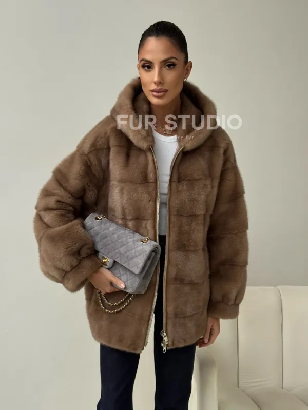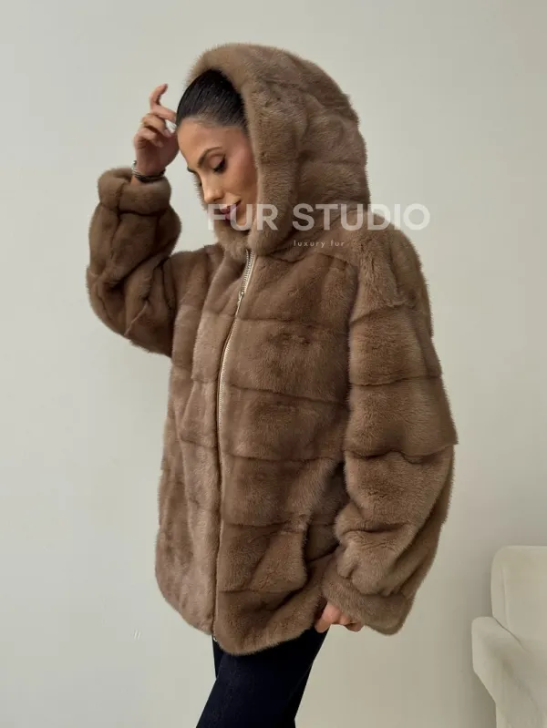 Бежевая норковая куртка с капюшоном доступна для покупки в нашем магазине Furs Studio в , с возможностью доставки в любой город России. Добавьте немного стиля и элегантности в свой гардероб с этой курткой, которая будет вам служить многие годы, подчеркивая ваш неповторимый стиль.